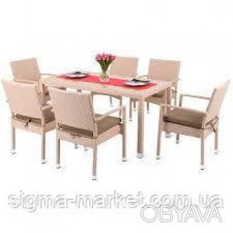 описDoris Beige 6 + 1 меблі з техноратанаНайважливіші особливості:алюмінієві профілі з порошковим покриттям,techno -
