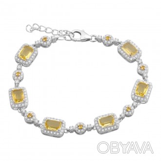 Родированный серебряный браслет 925 пробы с цитрином nano 7.51ct. Родированные украшения дольше сохраняют свое первонача -