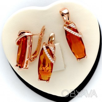 Набор с золотым покрытие и цирконами.Покрытие: розовое золото 18к.Серьги размер: 22 х 8 мм. Вставка: искусственный ян -