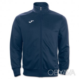 Спортивная кофта на молнии. Воротник, манжеты и нижний край из эластичного трикотажа. Имеет боковые карманы и вышитый ло -