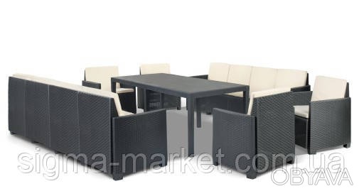 Багатий набір садових меблів складається з набору для початківців: 4 крісла та 2 чотиримісних дивани, з яких ви можете скласти свій ідеальний набір на 12 осіб!