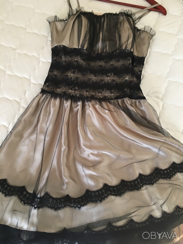 Вечернее атласно -кружевное платье размер46 в хорошем состоянии один раз одето бежево-чёрное , по вопросам прошу звонить, фирма Appart