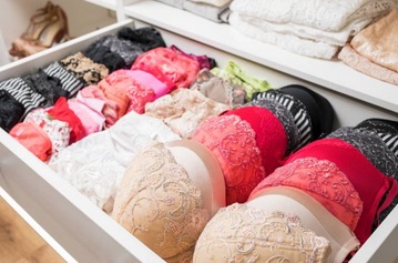 Если у в множество всевозможных бюстгальтеров, выделите для них длинный, но узкий ящик. Его ширины должно быть предостаточно, чтобы вы могли разместить там все свои лифчики. Складывать белье следует каскадом, ведь так намного удобнее и оно не деформируется: каждый бюстгальтер размешайте чашечками поверх предыдущего.
