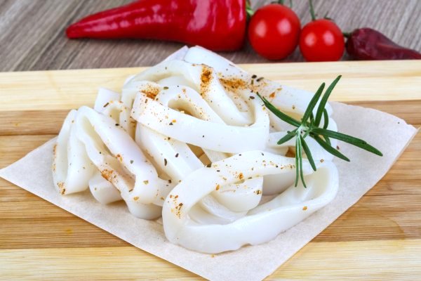 - Для получения безупречно вкуса, нужно правильно выбрать кальмары. При недобросовестном хранении и частых разморозках мясо приобретает горчинку. Рекомендуем взять неочищенные тушки. Чтобы сохранить максимальный вкус, не пользуйтесь авторазморозкой в микроволновке. Достаньте из морозильного шкафа тушки, дайте мясу полежать ночь в холодильнике, далее полностью разморозьте при комнатной температуре.