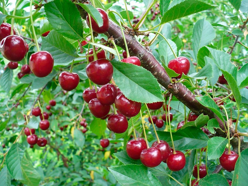 Кроме этого, нужно регулярно производить обрезку ветвей. В первую очередь обрезают больные и сломанные ветки. После этого можно начать формировать крону. Нужно оставить несколько основных веток, а остальные обрезать. Благодаря этому вишня будет расти не в высоту, а в ширину, соответственно будет больше плодов.