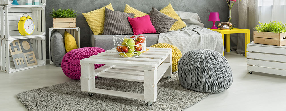 Приобретая пуф, акцент нужно сделать на выборе рисунка и цвета. Все детали должны гармонично вписываться в интерьер комнаты. Пуфы отлично будут смотреться в таких комнатах, как: