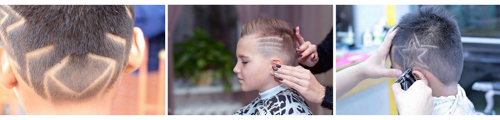 - трафаретные рисунки подойдут темноволосым ребятам, а мальчика со светлыми волосами лучше отказаться от них, ведь они будут буквально незаметными.