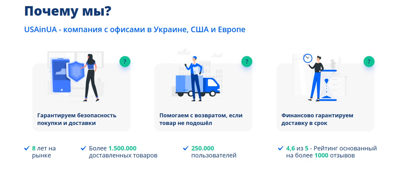 Вы выбираете понравившийся товар, все стальное компания делает за вас: никаких иностранных форм, никаких деклараций и заоблачных цен на доставку, никаких проблем с мошенниками, доставкой или возвратом товара. Доверьтесь USAinUA и наслаждайтесь покупками.