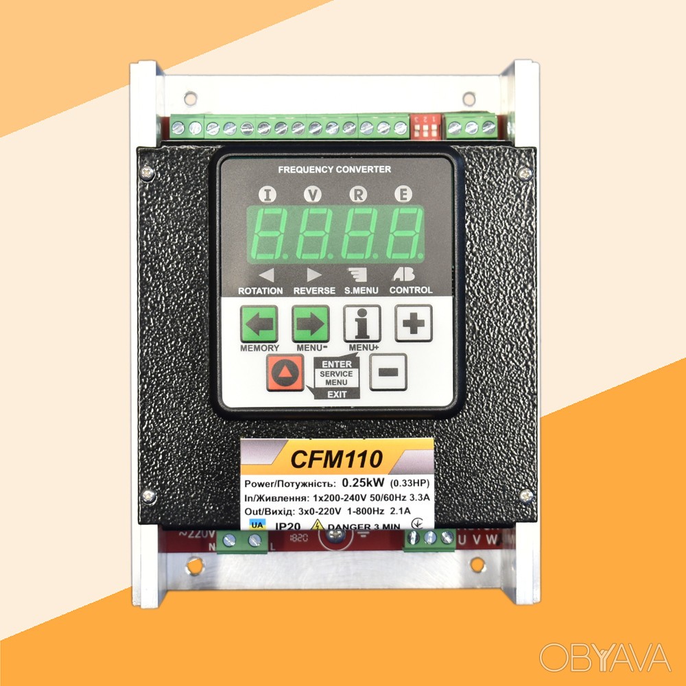 Преобразователи частоты серии CFM110 являются воплощением принципов простоты, компактности, функциональности и экономичности в одном устройстве. Эта серия рассчитана на электродвигатели малой мощности, а потому призвана избавить привод в целом от избыточно больших габаритов любого из компонентов. Радиатор охлаждения П-образной формы служит основой конструктива устройства, чем надежно защищает его от внешних механических воздействий, обеспечивая степень защиты IP20.