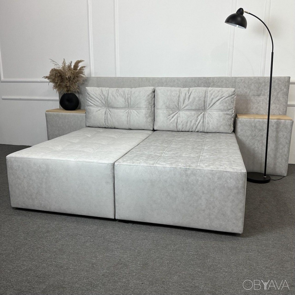 Комплектуется двумя подушками 830х450х250, наполнение подушек холлофайбер + две тумбочки из ЛДСП (цвет можно выбрать по желанию) + две ниши для белья.