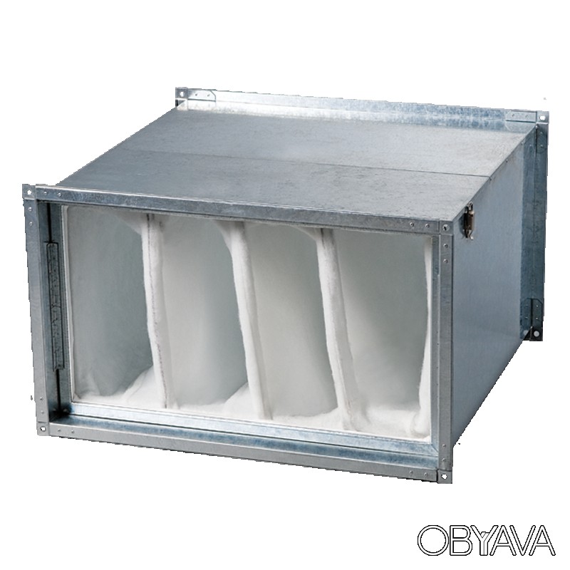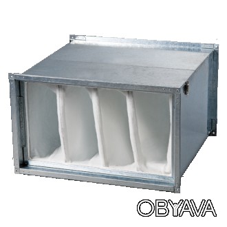 Корпус изготовлен из оцинкованной стали. Откидная крышка фильтра оборудована рычажными замками для быстрого доступа к сменному фильтрующему элементу. Фильтрующий элемент карманного типа изготовлен из нетканого полотна из синтетических волокон и зафиксирован на каркасе из стальной рамки. Фильтры изготавливаются из материалов с классом очистки G4, F5, F7.