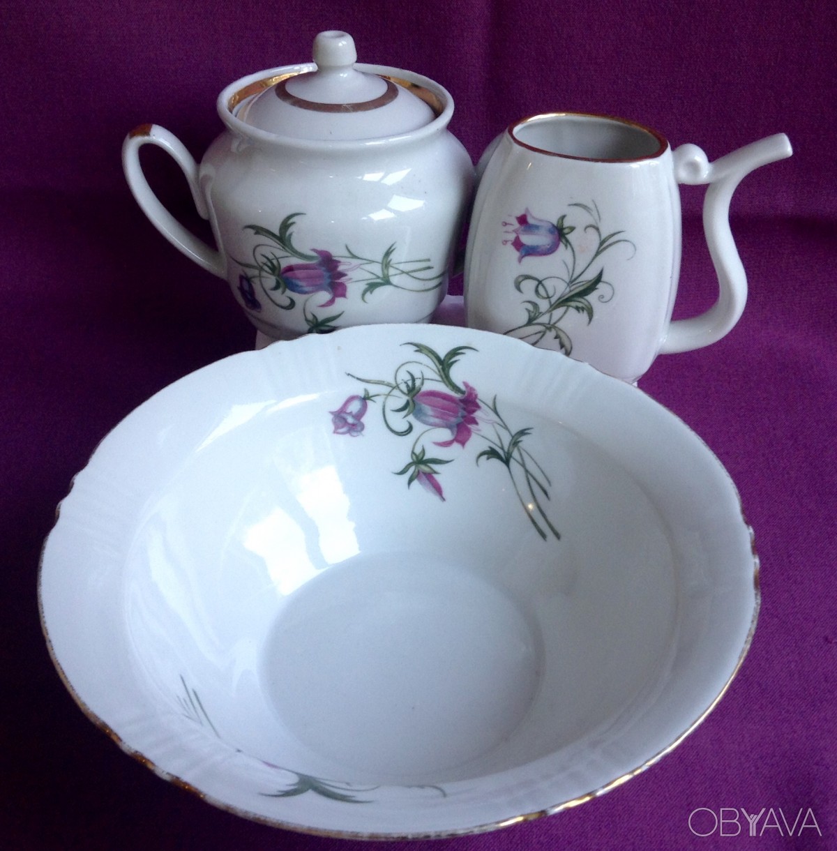 Комплект Колокольчики. Сахарница, кружка для минеральной воды. Фарфор.