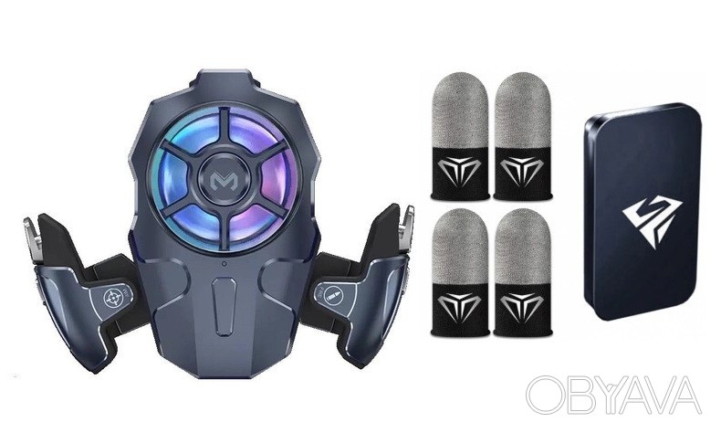 Комплект: игровой геймпад триггеры кулер для охлаждения смартфона MEMO AK03 для телефона смартфона PUBG Mobile, Snadoff 2, Free Fire + 4 напальчника Sarafox с боксом для храненияУникальное решение для настоящих любителей игр. Изготовлен из качественного и прочного материала. Благодаря данному девайсу, вы всегда будете на шаг быстрее своего конкурента и сможете удобно прицелиться и выстрелить. Благодаря сенсорному воздействию на экран триггеры становятся быстрее.Технология Air Mapping позволяет добиться идеальной скорости срабатывания и точности передачи импульса на дисплей, а встроенный в левый триггер макрос поможет контролировать отдачу благодаря уменьшению скорострельности автоматического оружия или наоборот.Потребление у триггера низкое – можно играть около 20 часов от одного заряда.Кулер помогает смартфону оставаться в рабочем режиме без перегрева. Это даст вам пару самых важных FPS, руки не будут сильно потеть, а самое главное – износ аккумулятора снизится.Встроенный аккумулятор на 400 mAh поможет охлаждать телефон в любом месте и не привязываться к розетке.В комплекте удобный компактный кейс для транспортировки и хранения набора. Кейс выполнен из приятного материала и не имеет постороннего запаха.Важно! Заблокировать экран устройства, после чего разблокировать его (условный перезапуск дисплея, предотвратить некорректное срабатывание тачскрина).Особенности кулера:Аккумулятор 400 мАч (4 часа работы от 1 заряда, время зарядки до 1.5 часа)3 скорости вращения вентилятораRGB светодиодная подсветка (можно отключить удерживая кнопку питания)Питание по Micro USBПоддерживает размеры всех современных смартфонов