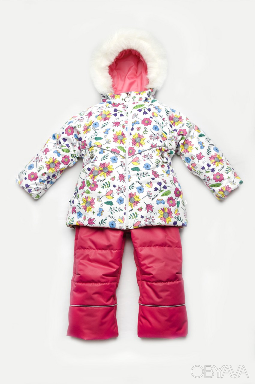 Детский зимний костюм-комбинезон «Цветочки» (куртка и полукомбинезон) — подходит для девочек 1.5 — 5 лет.