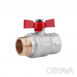 Полнопроходной шаровой кран ICMA 1" с красной бабочкой, наружной/внутренней резьбой, противовзрывным штоком с двойным резиновым кольцом, патрубком (система "Антипротечка"). Шаровой кран ICMA применяется в системах отопления и охлаждения. Максимальная рабочая температура - 150 °C. Изделие выполнено из высококачественной горячештампованной латуни CW617N – UNIN EN 12165, покрытие - никелирование.