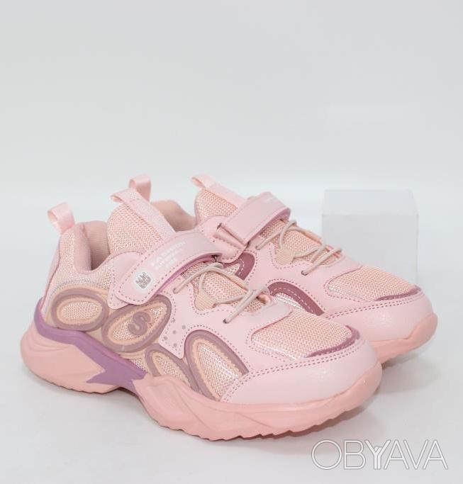 Детские розовые кроссовки девочке на шнуровке и липучке