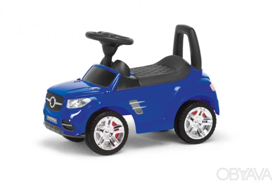 Машинка каталка. Открывается капот и сидения. Под сидением расположен вместительный отсек для игрушек. Чтобы начать движение, ребенку нужно оттолкнуться ножками от земли, регулируя направление движения рулем. Допустимая нагрузка: до 23 кг.