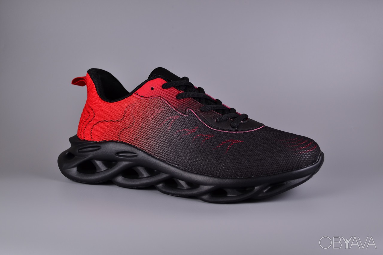 Верхняя часть выполнена из прочного и дышащего материала, комбинирующего черные и красные элементы, что придает обуви динамичный и современный вид.