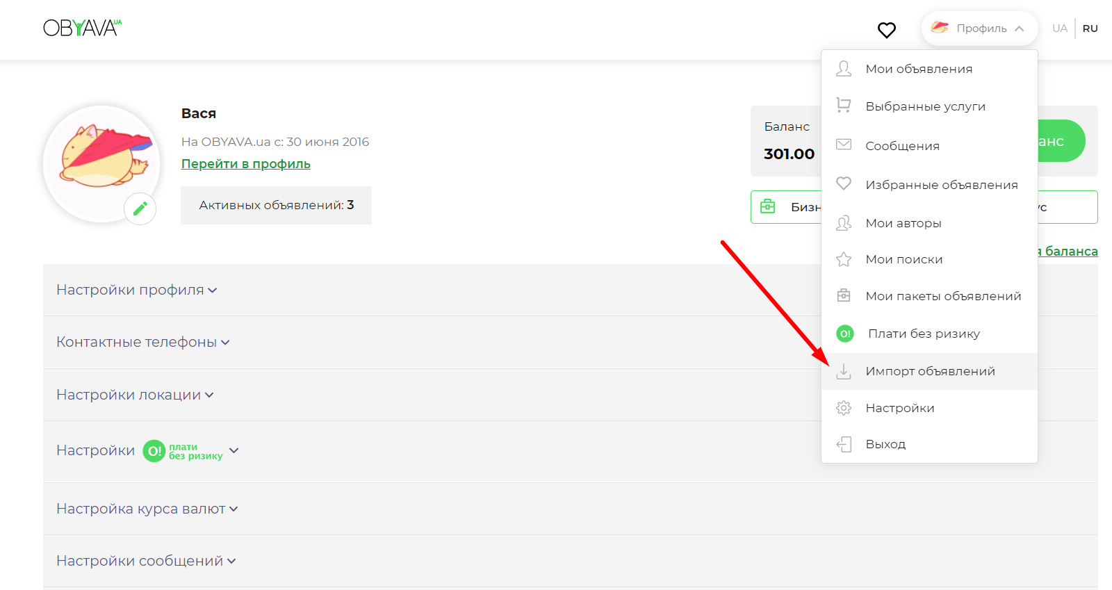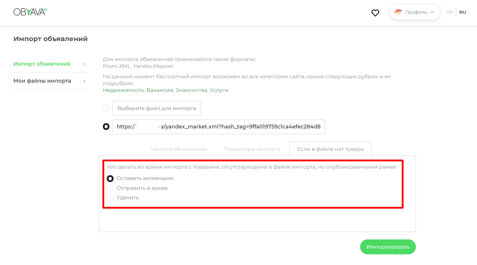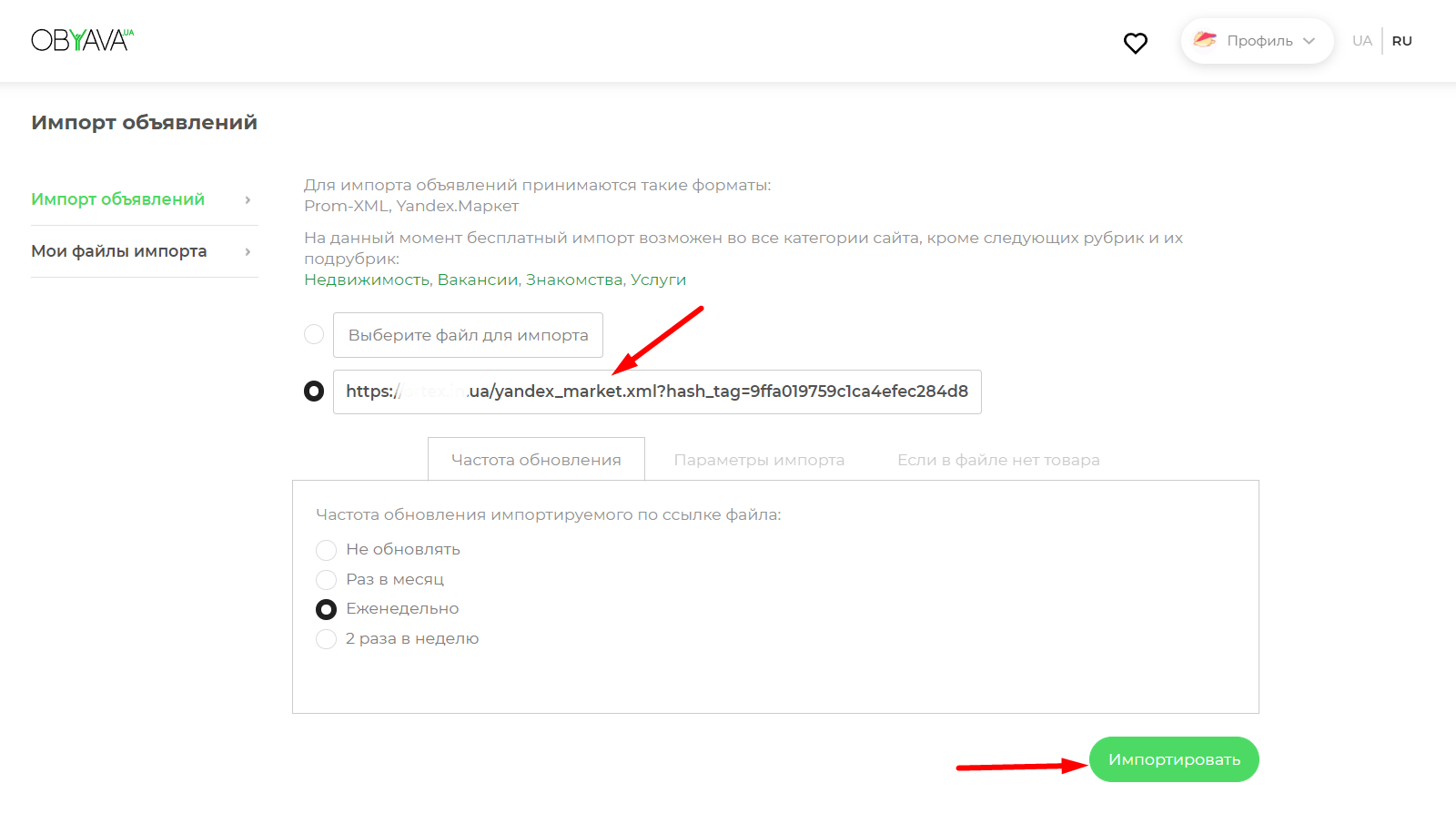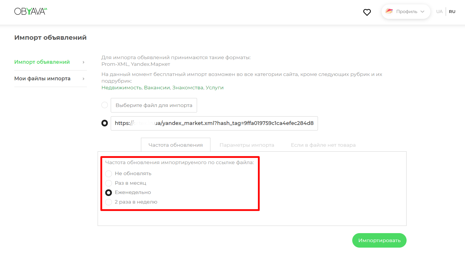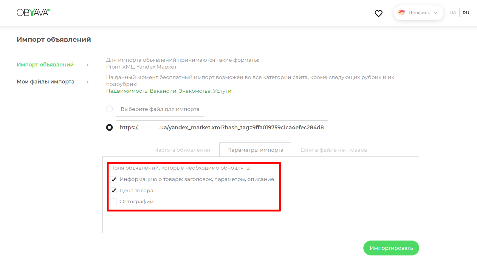 Как импортировать товары в свой профиль на OBYAVA.ua