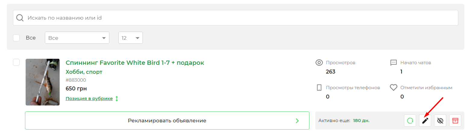 - в разделе «Мои объявления» найти объявление, которое подлежит редактированию, и нажать «Править»;