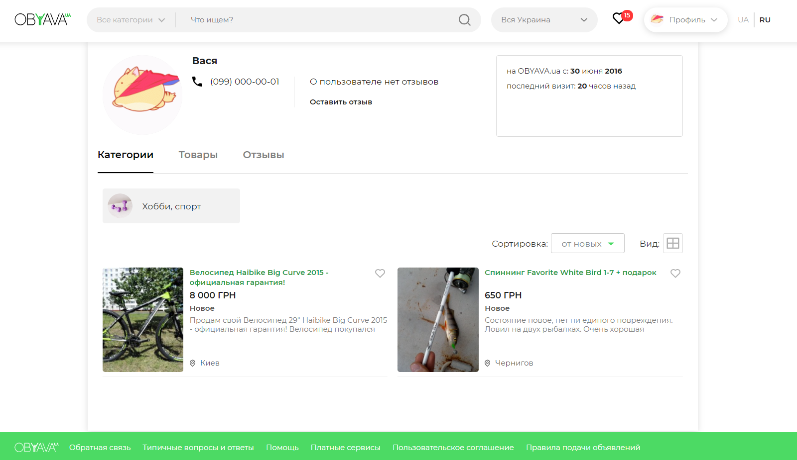 Страница "Объявления профиля" это ваш мини-магазин на доске объявлений OBYAVA.ua который вы можете использовать для быстрой продажи ваших товаров и предложения услуг.