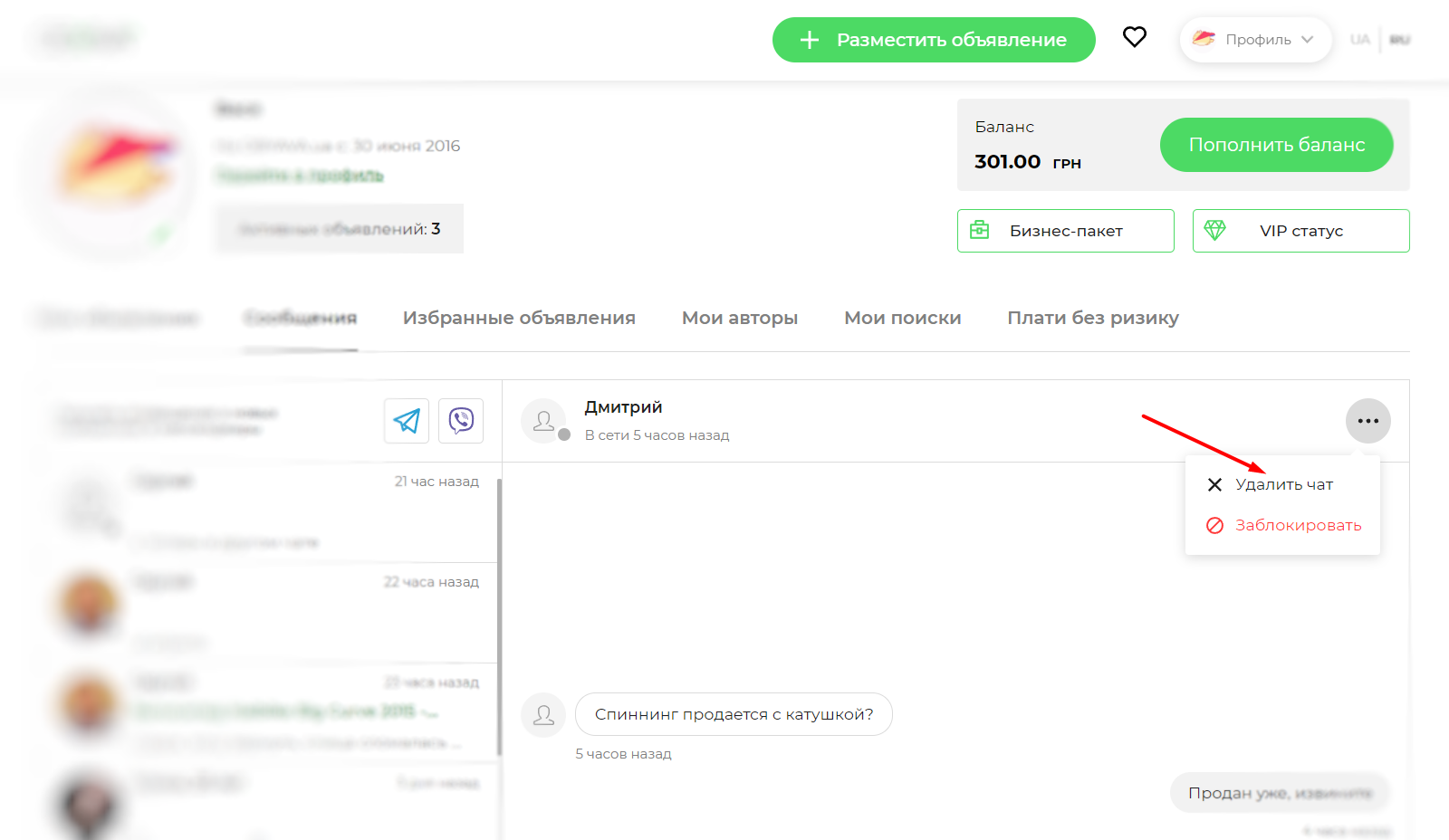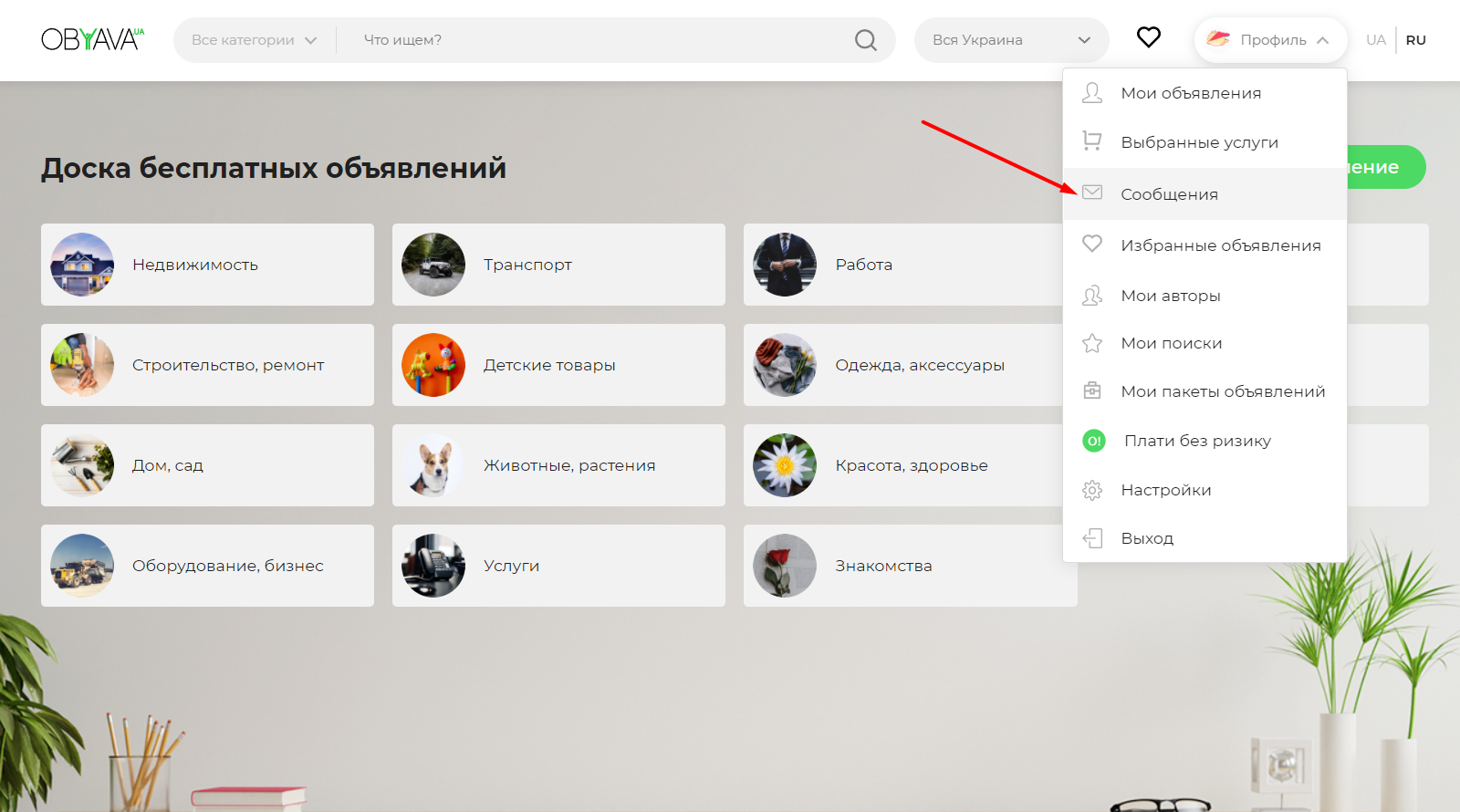 Все ваши сообщения хранятся в разделе «Сообщения». Для того чтобы попасть в этот раздел, наведите курсор мышки на меню «Профиль» вверху сайта и в выпадающем списке выберите пункт «Сообщения». Здесь отображается вся история ваших сообщений.