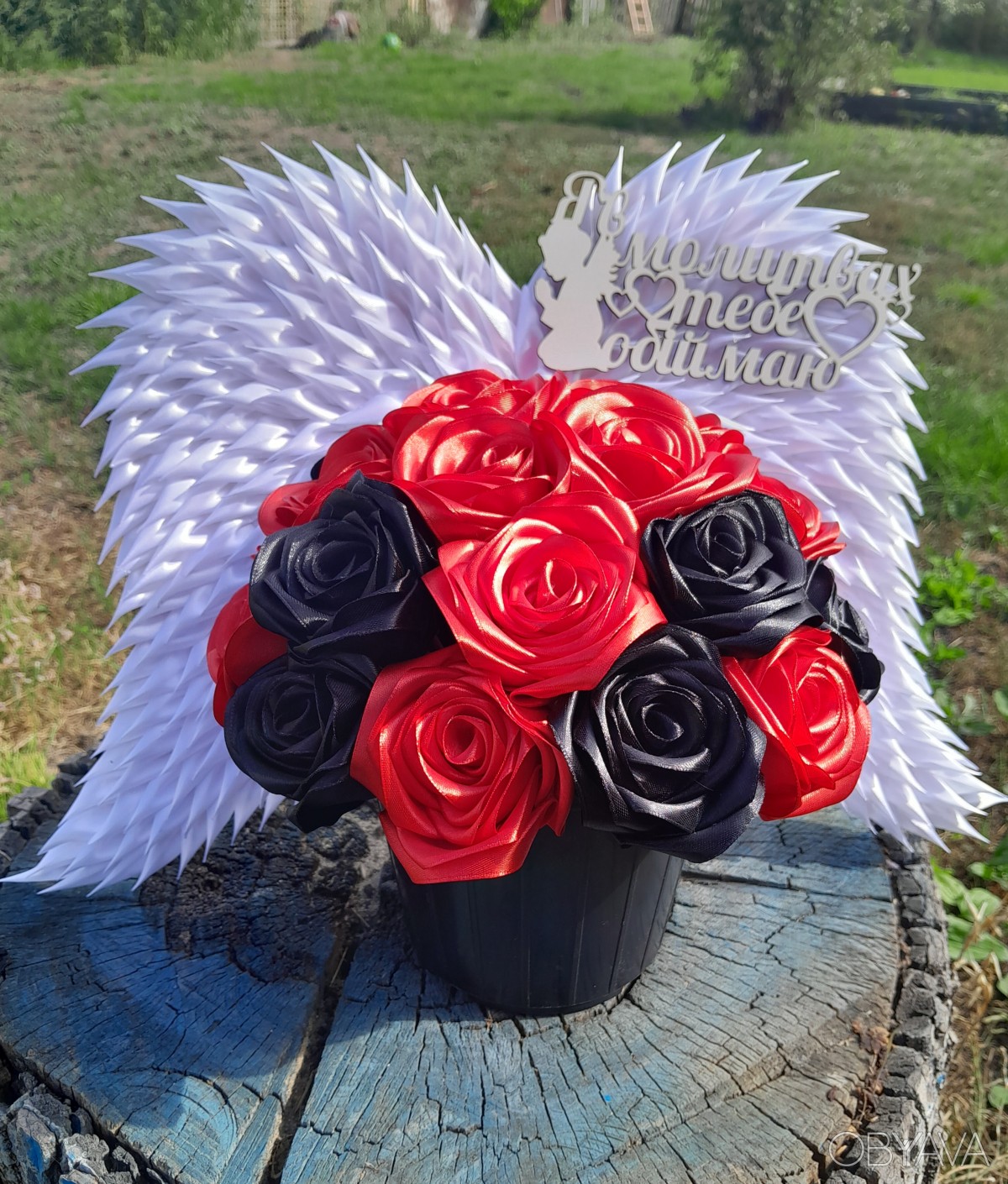 В наявності букет з 20 троянд ,з крилами, у пластиковому кашпо.