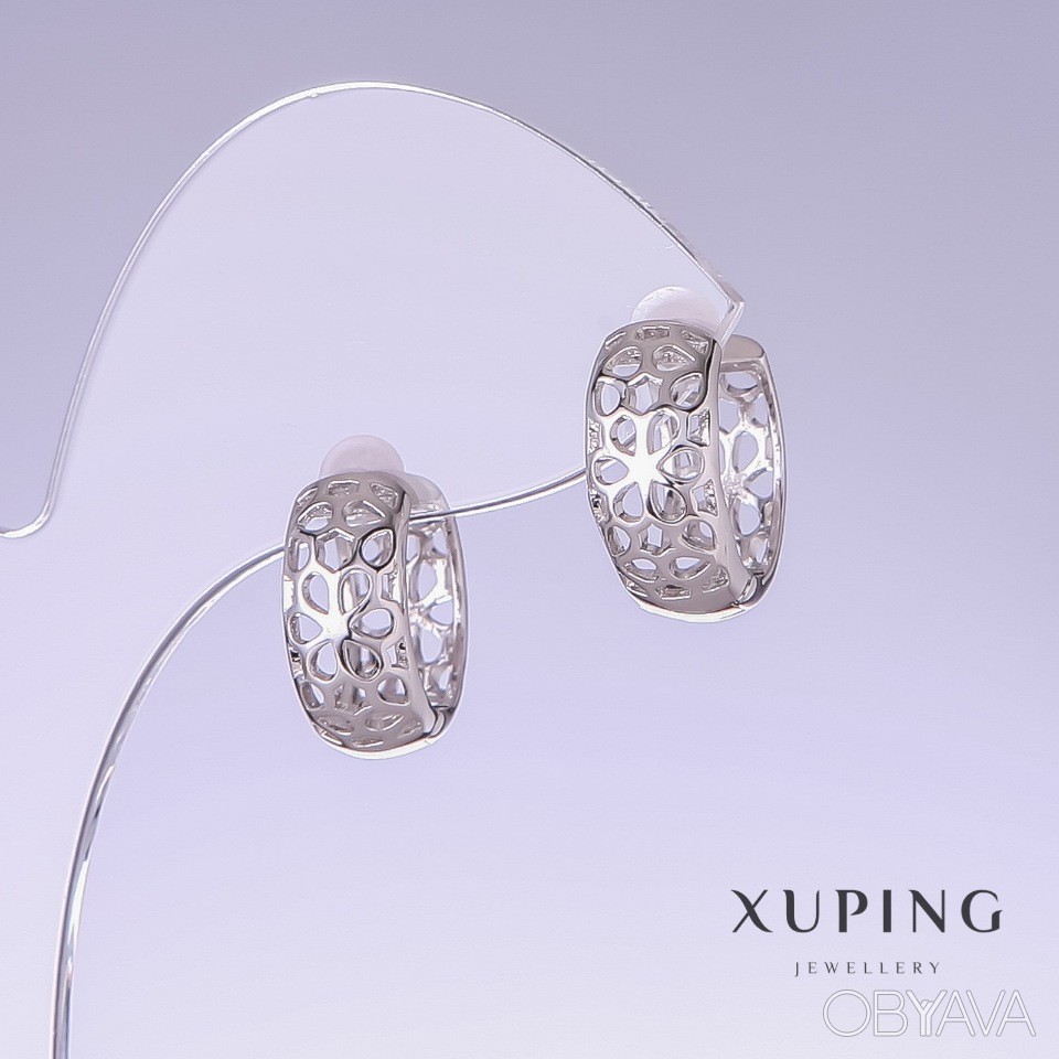 Серьги Xuping с белыми стразами L-14мм s-7мм родий