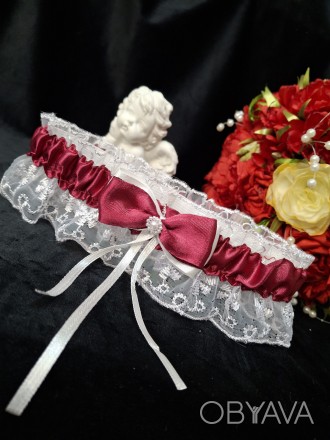 Cвадебная подвязка кружевная с лентой. Резинка хорошо тянется.