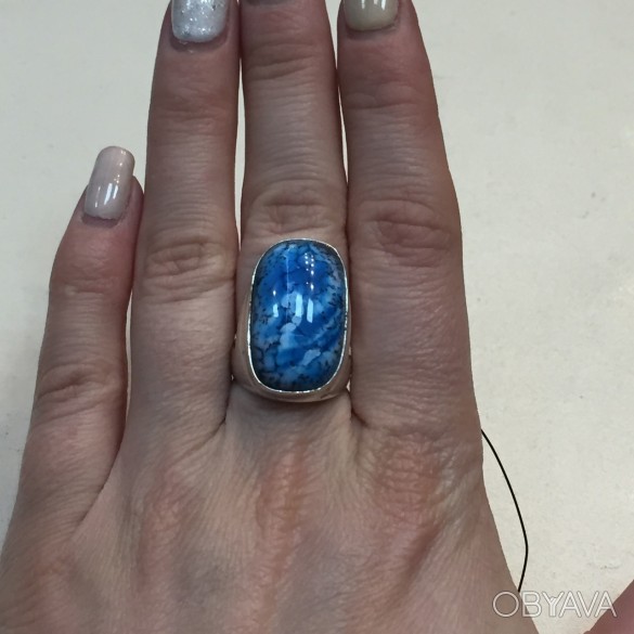 Красивое кольцо с натуральным дендритовым опалом в серебре.