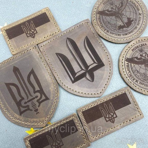 Шкіряний шеврон будь-якої форми, на липучці. Патч ручної роботи. Лазерне гравіювання не стирається. Швидке надсилання Нубук