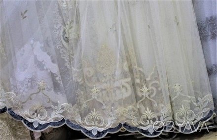 Тюль от турецкого производителя. Основа гардины качественная и прочная - фатин. В вышивке присутствует нежный блеск. Узо -