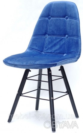 Стул Alex Q BK бархат (велюр) синий Eames на деревянных черных ножках с прямыми