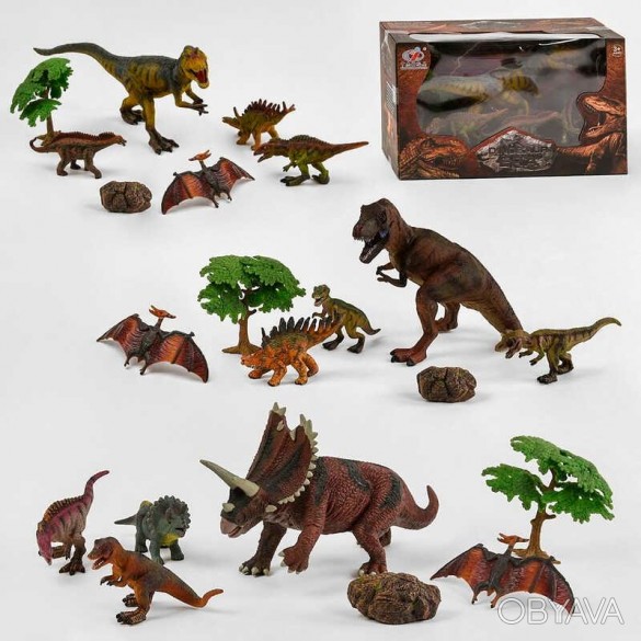 Набор динозавров Q 9899-213 (24/2) 3 вида, 7 элементов, 4 динозавра, аксессуары,