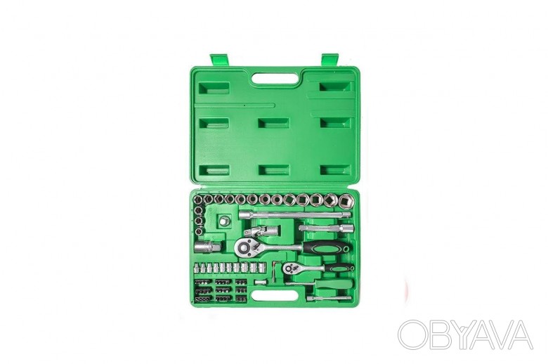 Набор состоит из 72 единиц с рабочими квадратами 1/2" и 1/4", практичен и надежен в эксплуатации. Головки размерами от 4-27 мм. Все насадки изготовлены из хром-ванадиевой стали. Набор укомплектован в удобный пластиковый кейс. Благодаря строгому соблюдению технологии производства, весь инструмент характеризуюется точностью и отсутствием дефектов. Небольшие габариты набора, позволяют хранить его как в гараже, так и дома.