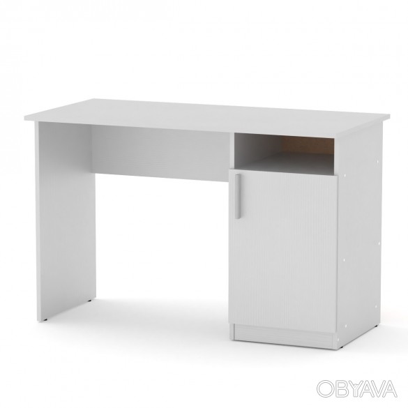 Письменный стол Ученик изготовленн из ламинированного ДСП, толщиной 16 мм, кромка ПВХ 0,5 мм. Стол оснащен полкой, которая располагается под столешницей, и боковой тумбой с дверцей, за которой находится полка. Простой и практичный по дизайну, он подойдет для оснащения любого вида помещения.