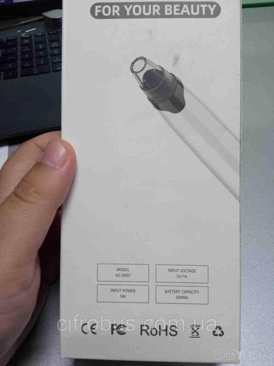 Blackhead Remover KS-X007 — це акумуляторний вакуумний пристрій для глибокого очищення пор із функцією підігріву, 3 рівнями всмоктування та 4 насадками для догляду за шкірою обличчя.