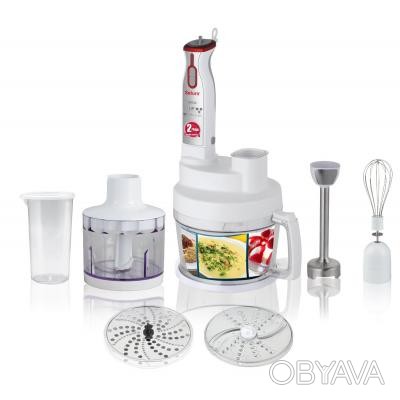 отлично сочетаются базовые функции кухонного комбайна и ручного погружного блендера, поэтому он станет надежным помощником для каждой современной хозяйки. Благодаря специальным теркам, можно натереть свеклу, морковь, картофель для драников, нашинковать капусту, с помощью венчика взбить в густую массу сливки или белки, а измельчителем качественно измельчить необходимые продукты.
