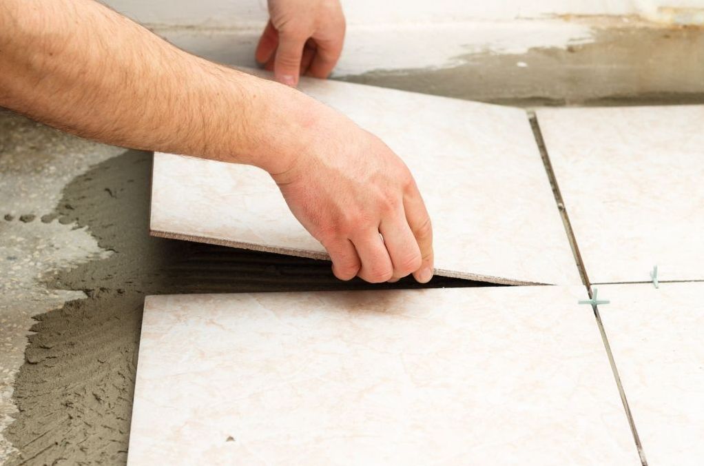 На підлогу плитку укладають, починаючи від найдальшої стіни і поступово просуваючись до дверей. Етапи проведення робіт аналогічні укладанні кахлю на стіни. Єдина різниця - щоб добре «посадити» плитку на підлогу, необхідно використовувати гумовий молоток.