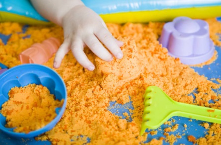 - Безпека. Склад повністю безпечний, що дуже важливо при виборі дитячих іграшок. Він не може бути джерелом патогенів, на відміну від звичайного піску. Також випадкове проковтування крупинок не зашкодить здоров'ю малюка.