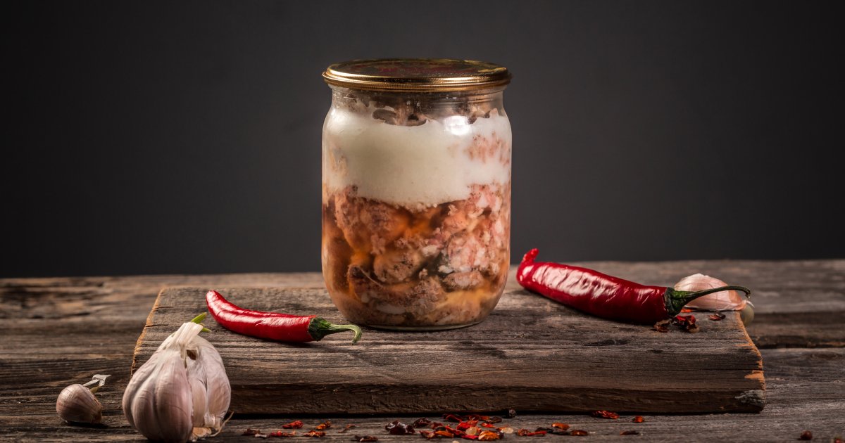 Робити консерви можна не тільки з м'яса, що пройшло теплову обробку, але і з сирого продукту. Якщо ви вирішили використовувати обсмажене, відварене або тушковане м'ясо, розкладайте його в гарячі банки. Ємності заповнюйте основним продуктом і підливою до «плічок», так як під час стерилізації вміст трохи збільшується в обсязі, особливо це стосується хрящів та сухожилля. Герметично закупорені банки поставте у воду та стерилізуйте при температурі 100 градусів.