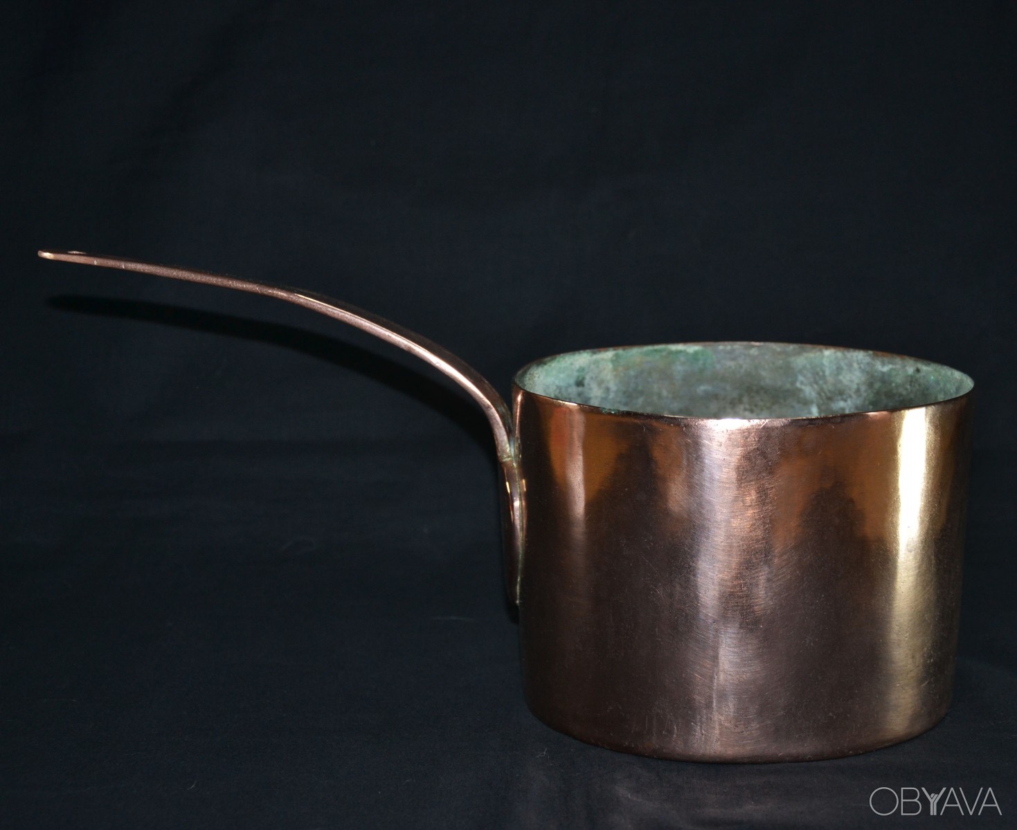 медный казан, выполнен из меди, ручка металлическая, . Высота без учета поднятой ручки 23см, диаметр по верху 19см., вы