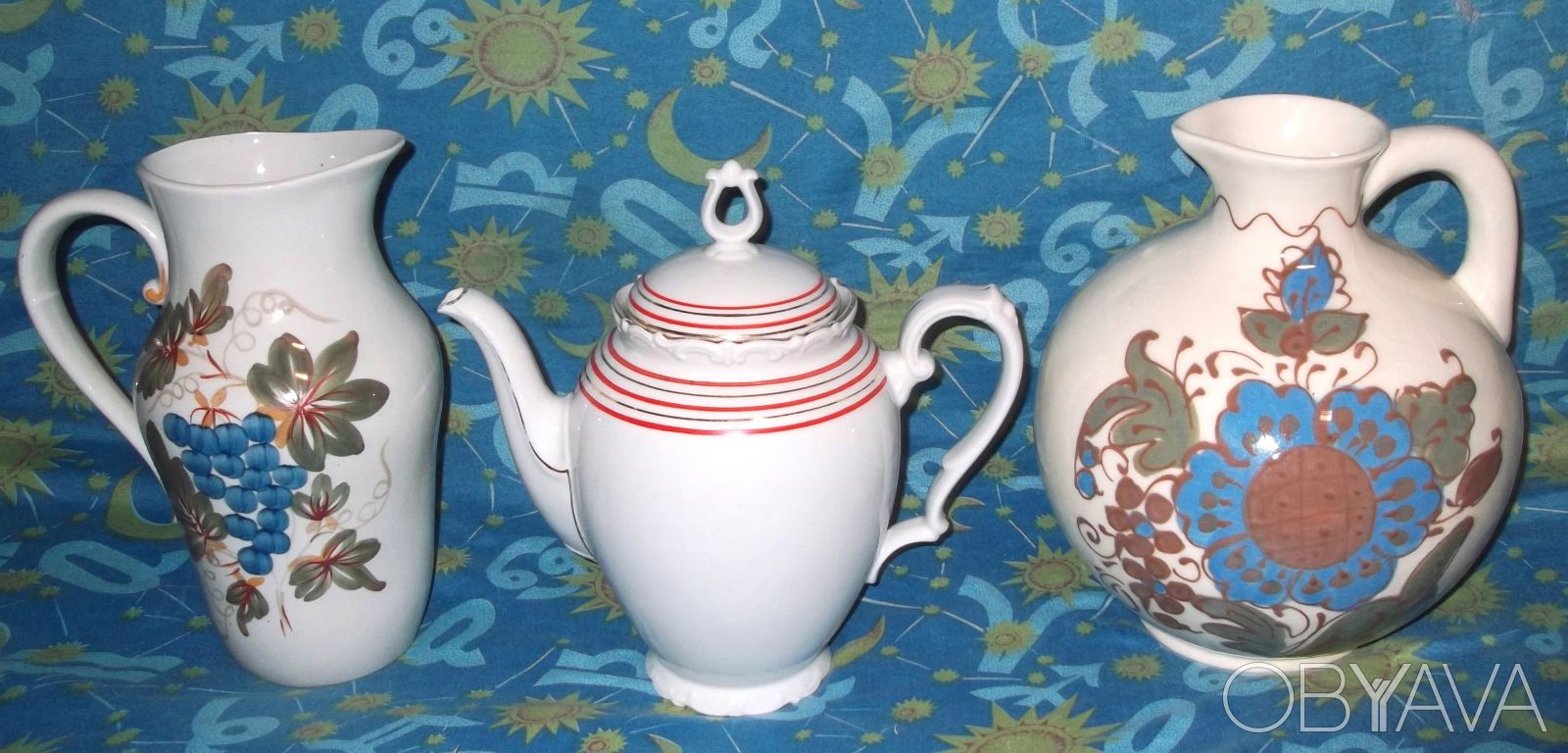 Амфора (стилизированная). Раз.:высота 27; ширина 22; в окружности 70(см.). Кувшин и кофейник (тех же габаритов ), имеют незначительные (см. фото) изъяны. *Можно в розницу.