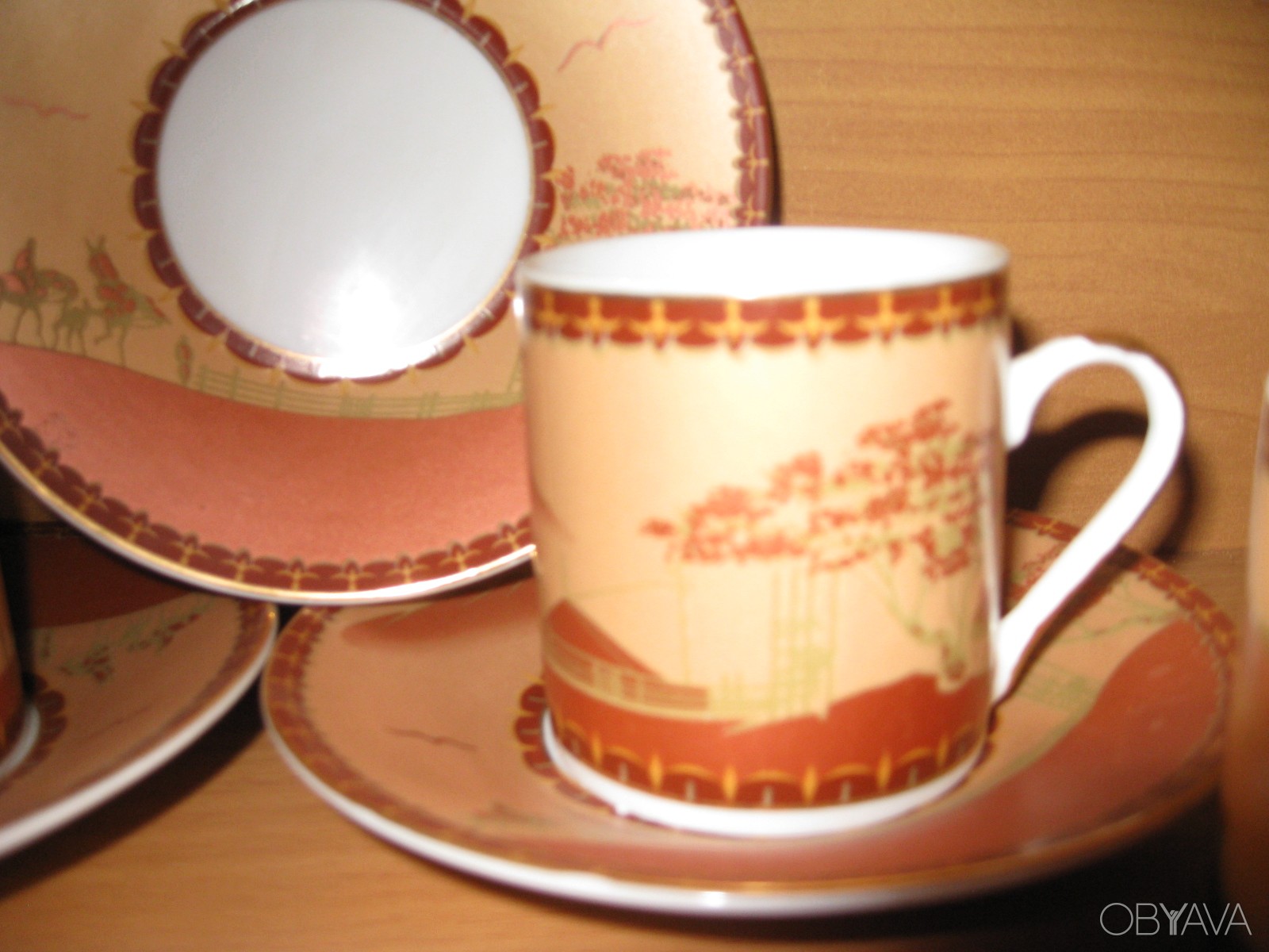сервиз кофейных чашек на 6 персон, ширина чашки - 5 см, высота чашки - 5,5 см, ширина блюдца - 11 см,