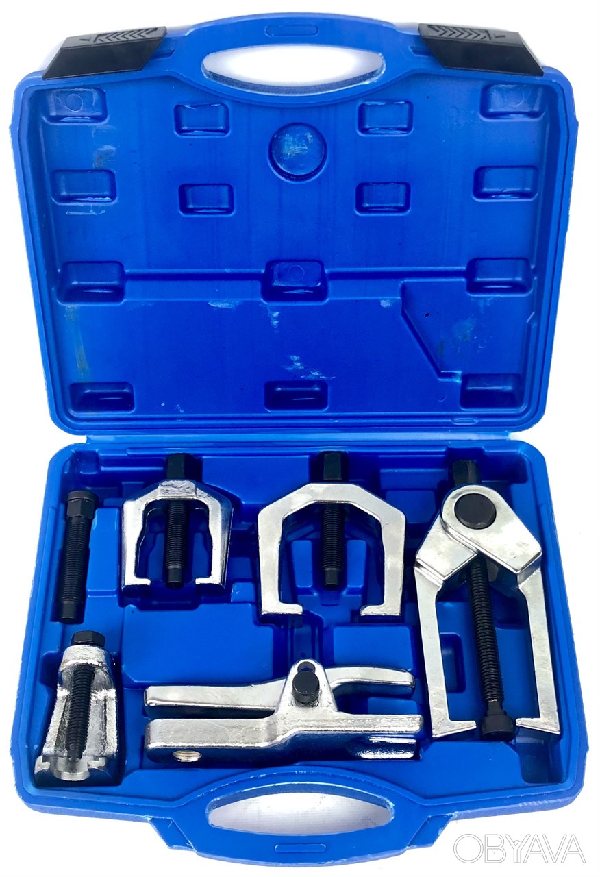 Набір знімачів кульових опор і рульових наконечників 6 предметів LEX LXBJR6 ― комплект призначений для роботи з кульовими шарнірами, рульовими тягами, шатунными важелями, амортизаторами і т. д. Інструмент виготовлений зі спеціальної кованої сталі, що робить його ударом-стійким.