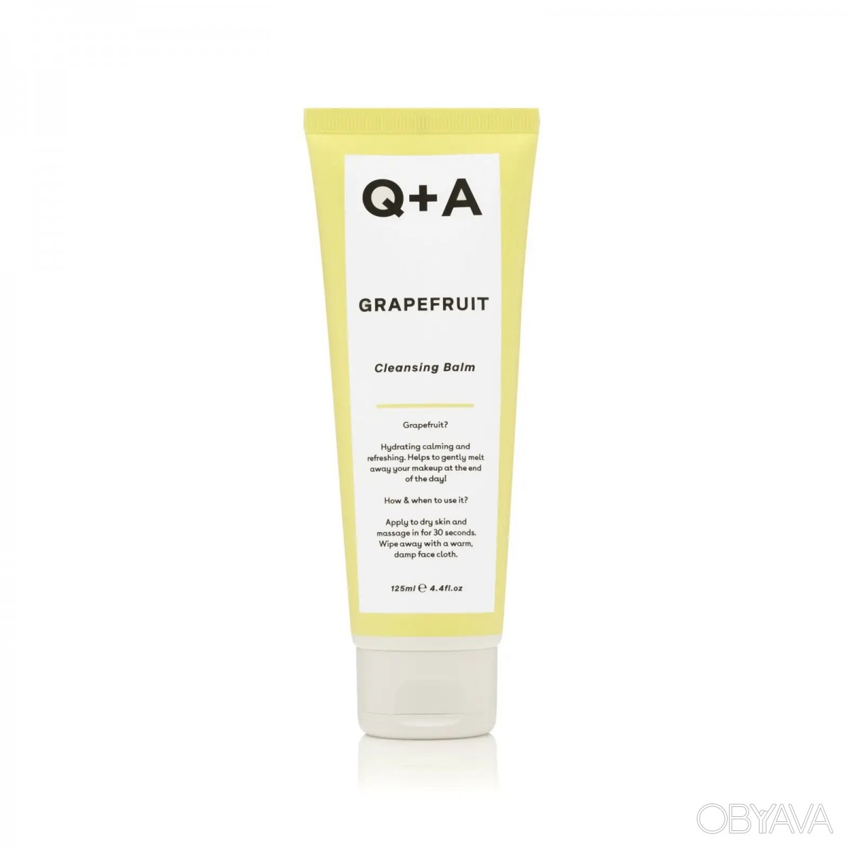 Очищувальний бальзам Q+A Grapefruit Cleansing Balm на основі комбінації натуральних масел, ніжно і якісно очищає шкіру від залишків косметики, щоденних забруднень, токсинів і шлаків, активно живить і насичує вологою, має тонкий і яскравий аромат свіжого грейпфрута і підходить для шкіри будь-якого типу.