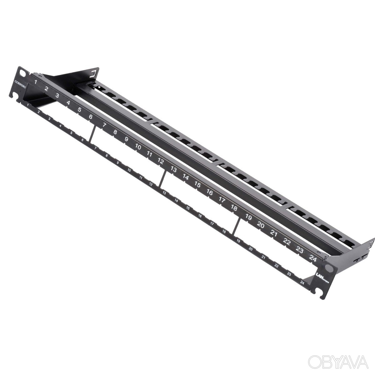 Патч-панель для 24 модулів xs500 Keystone, 1U, 19″, з кабельним організатором, Corning