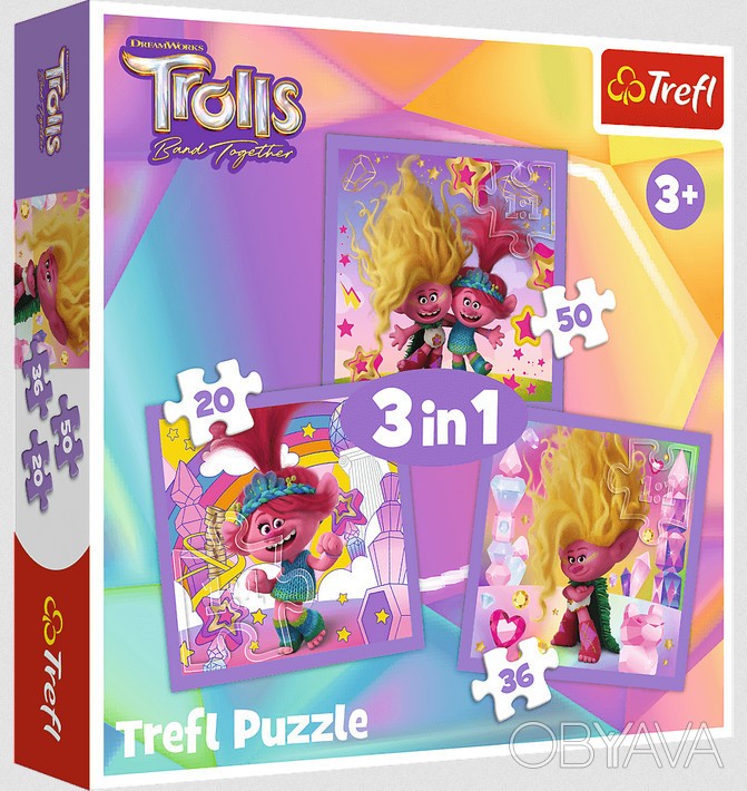 Встречайте веселых троллей – это детская головоломка, состоящая из 3-х независимых пазлов, предназначенная для всех поклонников приключений сказочных героев о троллях. После решения головоломки будут созданы три картинки, самая большая из которых имеет размеры 200х195 мм. Разнообразное количество элементов позволяет играть как детям младшего, так и чуть старшего возраста.