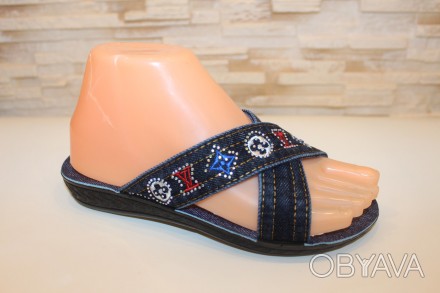 Шлепанцы женские джинсовые синие Б1611