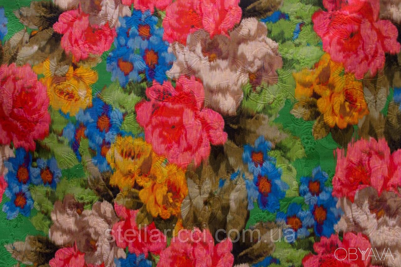 ТКАНЬ АРТ. 181/TI33Коллекция: ВЕСНА-ЛЕТО 2018 / ИТАЛИЯОписание: Костюмно-плательный жаккард с крупным разноцветным принтом. Рисунок сочетает оттенки зеленого, красного, синего и желтого цветов. Структурные узоры выполнены на растительно-цитрусовую тематику. Несмотря на прочность и жесткость, материал отличается небольшим весом. Плотно расположенные волокна не препятствуют циркуляции воздуха. Это позволяет создавать оптимальную температуру для организма без возникновения "парникового эффекта". Ткань устойчива к температурным перепадам. Она немного жесткая и плохо тянется, но при этом отлично смотрится на любой фигуре. Высокая плотность и особый тип плетения нитей защищают ткань от истирания и механических повреждений. Это обеспечивает аккуратный вид и долговечность изделий. Ткань практически не сминается, а при растяжении петли не распускаются.Инструкции по уходу: Рекомендуем сухую химчистку. Сушить можно на свежем воздухе в тени. Утюжить при 130-140 градусах с изнаночной стороны. Допускается стирка в пределах 30-ти градусов без машинного отжима. Бережный режим или стирка руками помогут уберечь ткань от возможной деформации. Для очистки используйте порошки без отбеливателей и щелочи. После стирки ткань из жаккарда может дать усадку до 7%.Назначение: Юбки и брюки из такой нарядной ткани подходят для торжественных мероприятий и на каждый день. Из жаккардовой ткани получаются прочные и красивые пиджаки и жилеты. Ткань подходит для пошива вечерних платьев и стильных костюмов.Совет: Для работы уместным будет пиджак из такого материала. Для вечерней прогулки можно сшить замечательный удлиненный жилет, который идеально дополнит любое платье и поможет зрительно вытянуть силуэт. Интересно смотрятся сарафаны, платья-футляры и комбинезоны из такой ткани. Сложный рисунок жаккардовой ткани следует уравновешивать однотонными вещами или комбинировать с простыми принтами. Юбки и брюки из такого материала хорошо смотрятся в сочетании с легкими шелковыми блузами. На каждый день подойдут брюки прямого кроя в сочетании с блузами, рубашками, футболками и топами. Успейте сшить свой удивительный наряд из представленной жаккардовой ткани с крупным цветным принтом.
